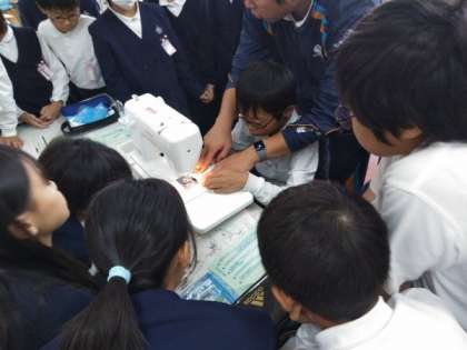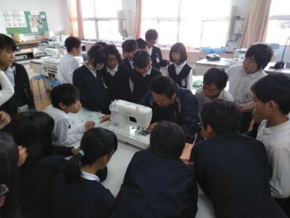 家庭科 ミシンの学習を行っていました。安全に気をつけて使い方を学んでいました。