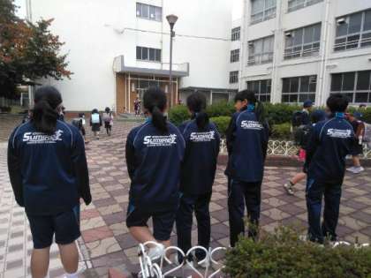 中学生は、朝早くから門に立って挨拶をしました。