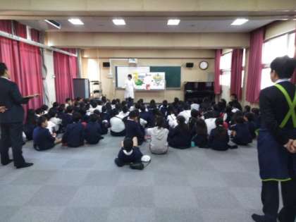 ライフの社会見学に行く前にライフの方がこられて、お話をしてくださりました。