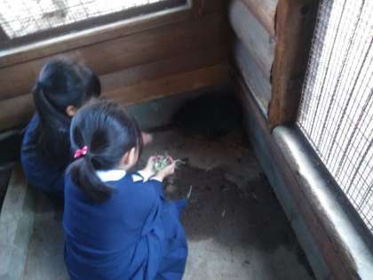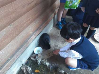 飼育委員会の児童が、教室に希望者を聞きにいき、参加したい児童がえさやり体験を行うことができます。