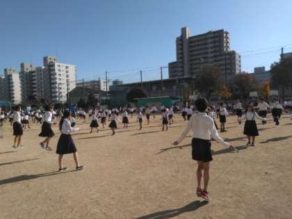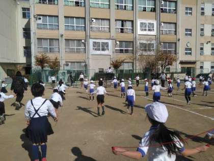 1-3年生は午前、4-6年生は午後、と時間を分けてなわとびに取り組んでいます!