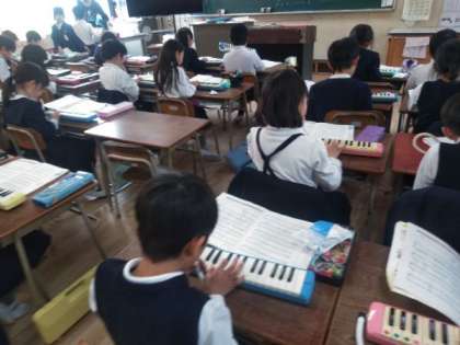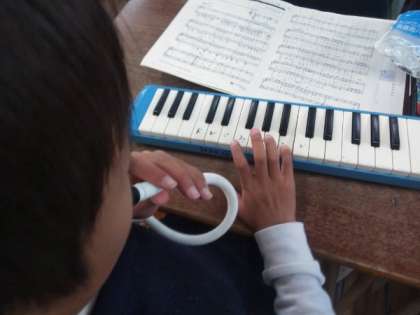 鍵盤ハーモニカの学習をしていました。