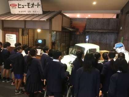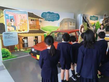 工場見学後、ダイハツの車の歴史を学んでいます。
