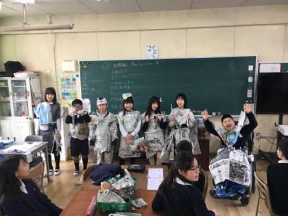 図画工作科の学習で 新聞紙ファッションショーを行いました。