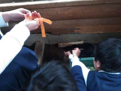 飼育委員会が企画したえさやり体験を行いました。