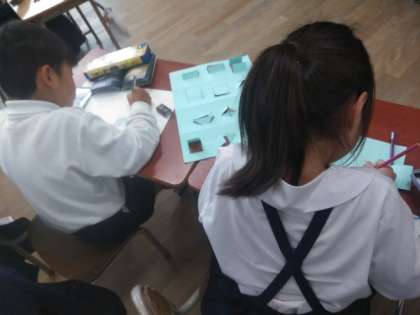 図画工作科「まどをひらいて」の学習に取り組んでいました。