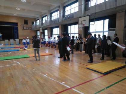 たくさんの方にきていただき、関目東小学校の体育科の授業を見ていただきました。