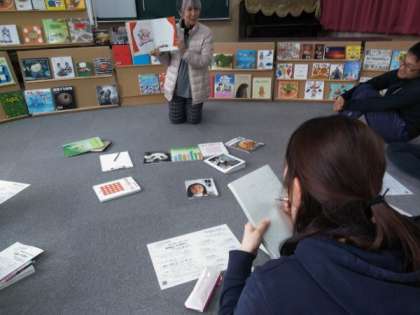 職員に向けて楽しい読み聞かせのコツや本にまつわる秘密のお話を聞かせていただきました。