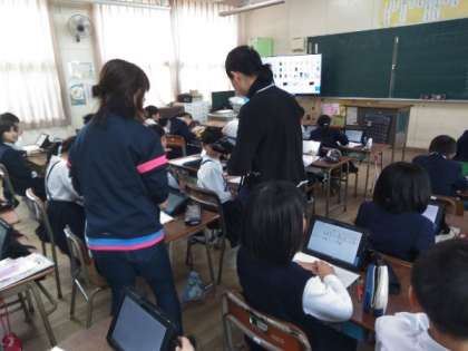 ICT支援員さんにもきていただき、タブレットを使って学習しました。