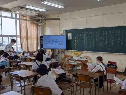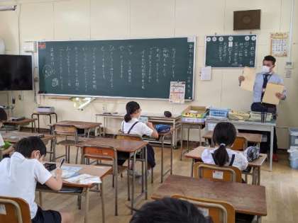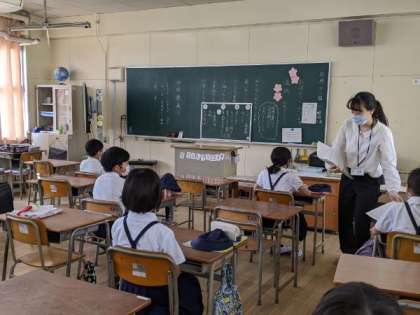 回収するときも、児童が密集することのないよう気をつけて回収していました。