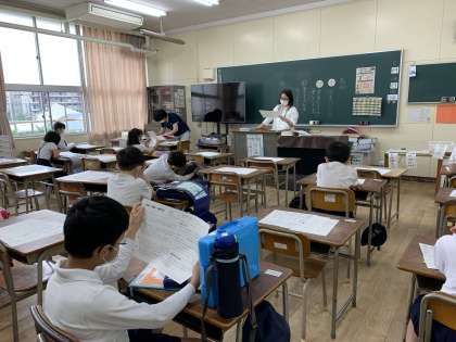 健康観察・課題の確認・社会科のノートづくりを行いました。
