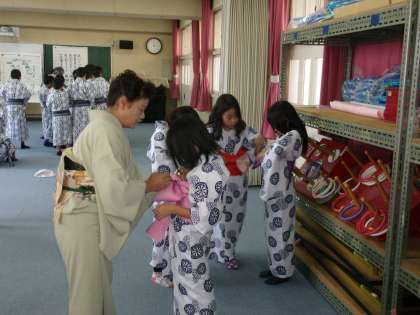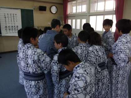 5年生は「着付」を学習しました。作法として、礼の仕方(立ったまま、座って)を教えてもらい、浴衣を自分で着れるようになりました。あと2回来ていただく予定になっています。