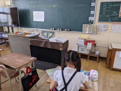 図画工作科の学習で絵の具を使って思い思いの絵を描いていました。