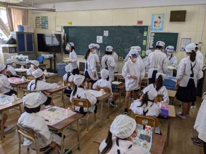 久しぶりの給食に職員も子どもも、よりいっそうおいしくいただくことができました。