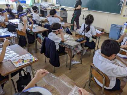 フェイスシールドをつけて活動しよう