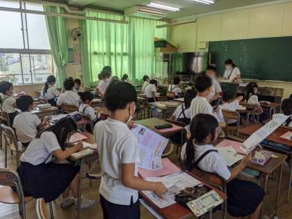 学習のまとめとなるテストの返却や答え合わせ、詩の音読発表会を行っていました。