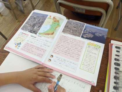 わたしたちが住む大阪府の地形の様子について、地図などの資料をもとに調べています。