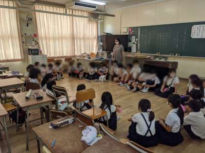 みんなで円になり、企画したプログラムを進めています。笑顔いっぱいです。