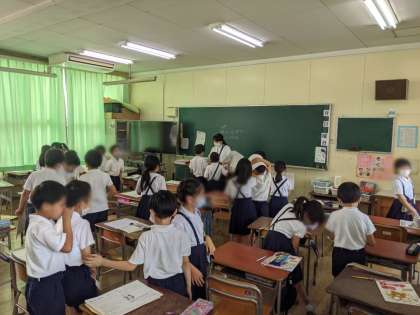 一人一人に通知表がわたされています。新しい教科、理科・社会はどうだったかな?