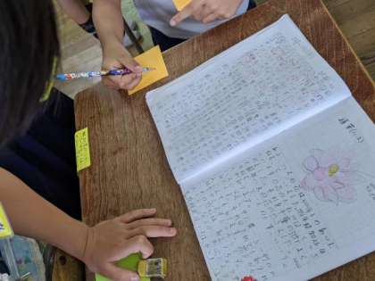 それぞれの課題に対して、その課題のよいと思ったところを付箋に書いていました。