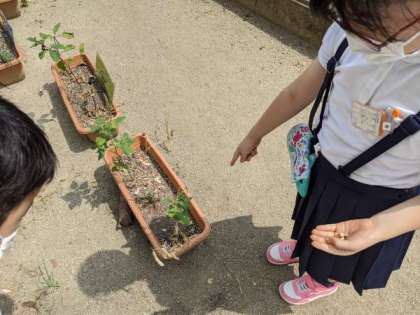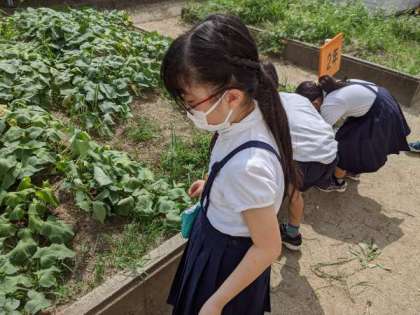 野菜の観察をしている児童がいました。