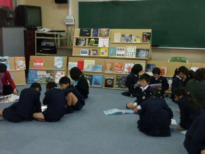 12月18(木)19日(金)の二日間、多目的室で「絵本の広場」を行います。たくさんの絵本を展示しています。地域の人も読みにきています。