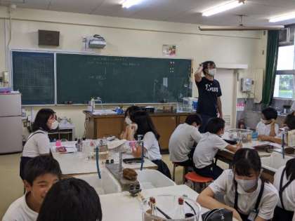 炭酸水に二酸化炭素が入っているのを見つけるには、どんな方法があるのか話し合っていました。