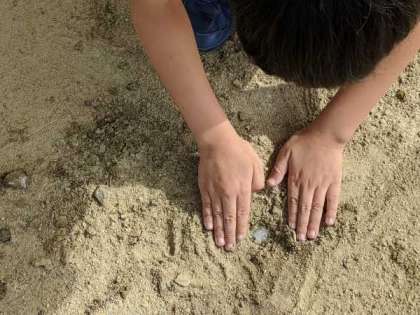 ひなたと日陰で、氷の溶け具合はどう違うのか調べていました。