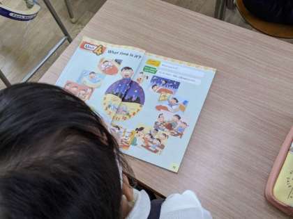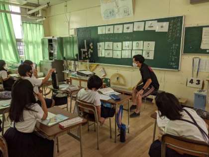 時刻や曜日のことについて、英語を使って、楽しく活動していました。