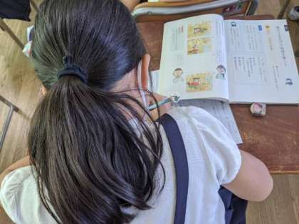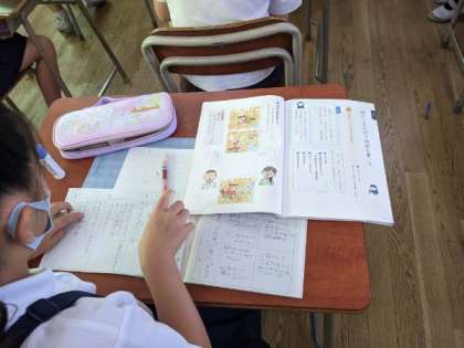 絵を見てイメージをふくらませ、物語の設定を考えていました。