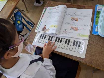 鍵盤をコピーしたものを使って、音階の練習をしていました。