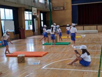 動画をとって、ポイントに気をつけて、技の練習をしていました。