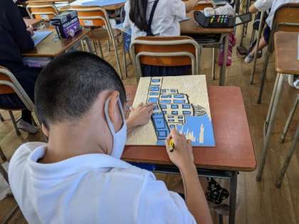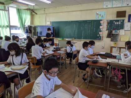 グループで協力して、場面ごとに何が書かれてあるのかまとめていました。