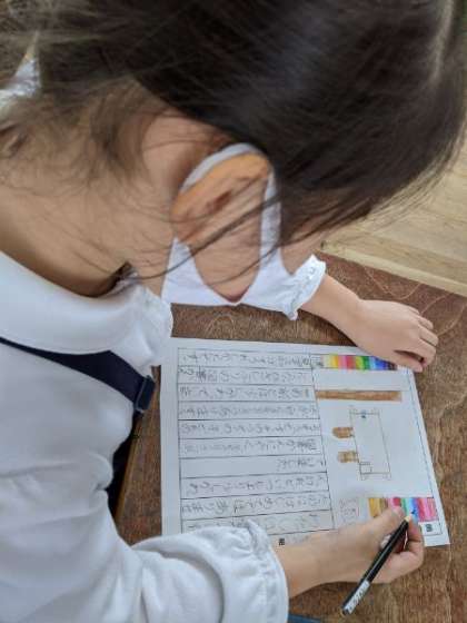 明日図書館見学に行くクラスは、担任の先生からお話を聞いたり、今日見学にいったクラスは、振り返りを丁寧に書いていました。