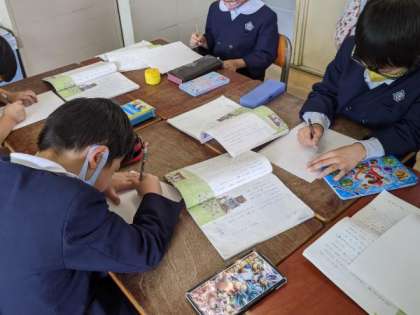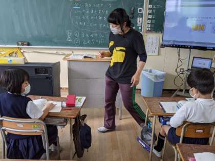 今日の新出漢字や物語文「ニャーゴ」について学習していました。