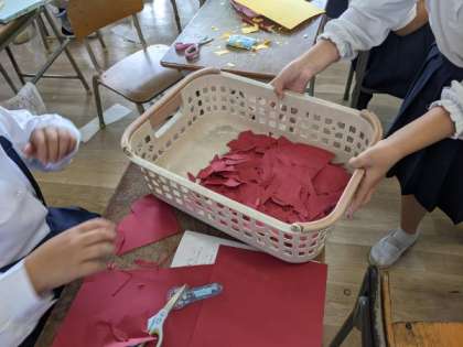 材料を作ったり、秋の季節を表す作品を作ったりしていました。
