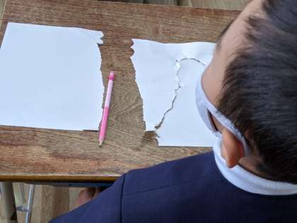 紙を手で破って、その形から想像力をふくらませて作品づくりをしていました。