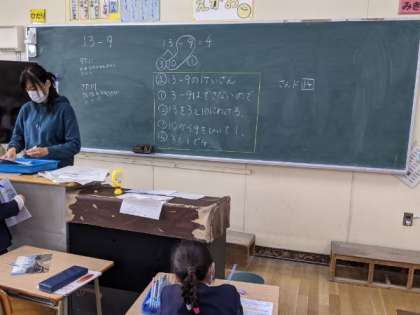 13-9のようにくり下がりのある引き算に挑戦していました。