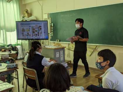 英語をつかって、友だちとコミュニケーションをとっていました。