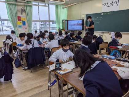 1を等しく分けたもののいくつ分(分数)の学習をしていました。