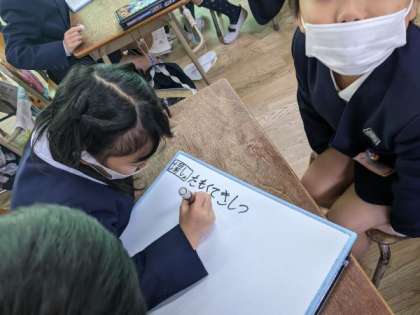 自分の写真を見て、体のパーツを意識し、紙版画に取り組んでいました。
