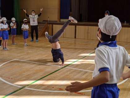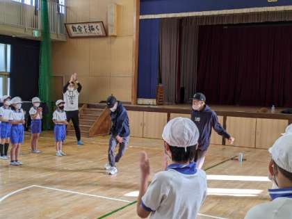 講師の方にきていただき、ブレイクダンスをみせていただいたり、自分たちも音楽に合わせて楽しく踊ったりしていました。