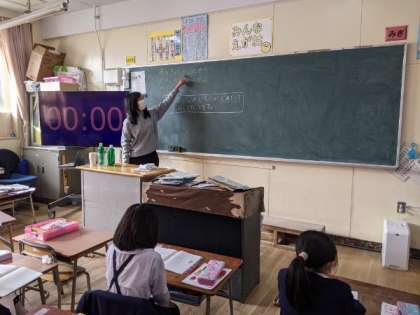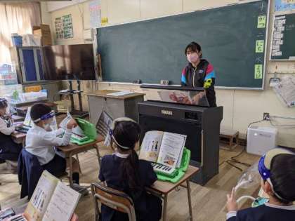感染症対策を行い、鍵盤ハーモニカの学習に取り組んでいました。