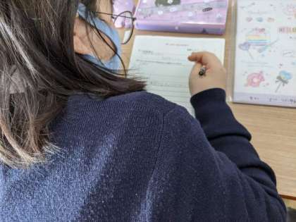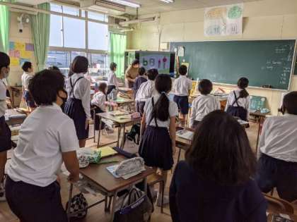 音楽を聞いて体を動かしながら、小文字の学習をしていました。