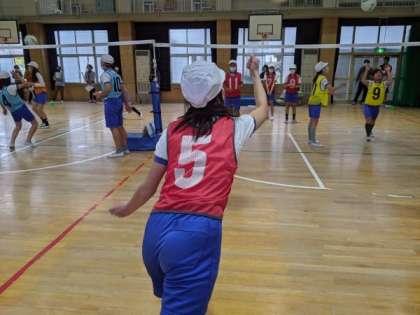 本日は、6年生のソフトバレーボールの学習の授業研究会を行いました。