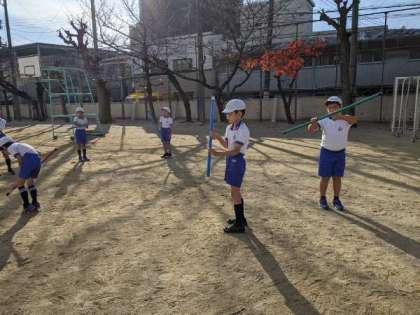 ボールやぼうなど、用具を使って学習していました。