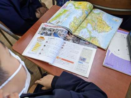 地図帳を使って学習していました。