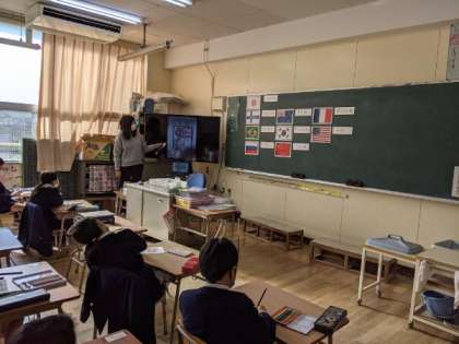 外国の方とのちがいを考えたりあいさつの言葉を知ったりしていました。