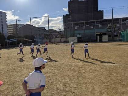 手を後ろで組んで走ったり、後ろに走ったり、いろいろな動きを楽しんでいました。