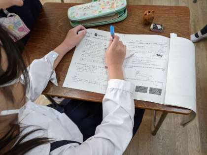 問題を解いたり、友だちと教え合いをしたりしていました。